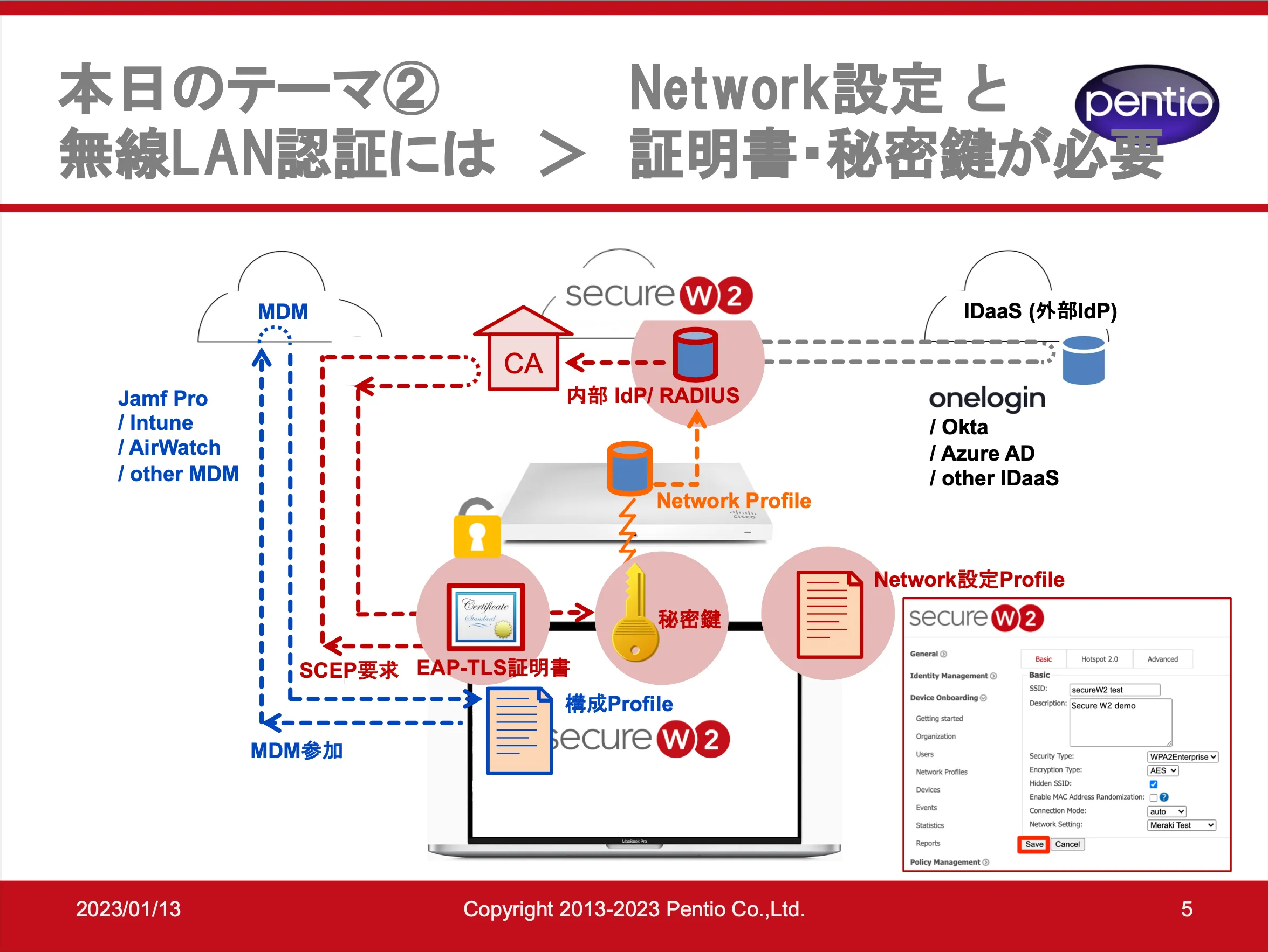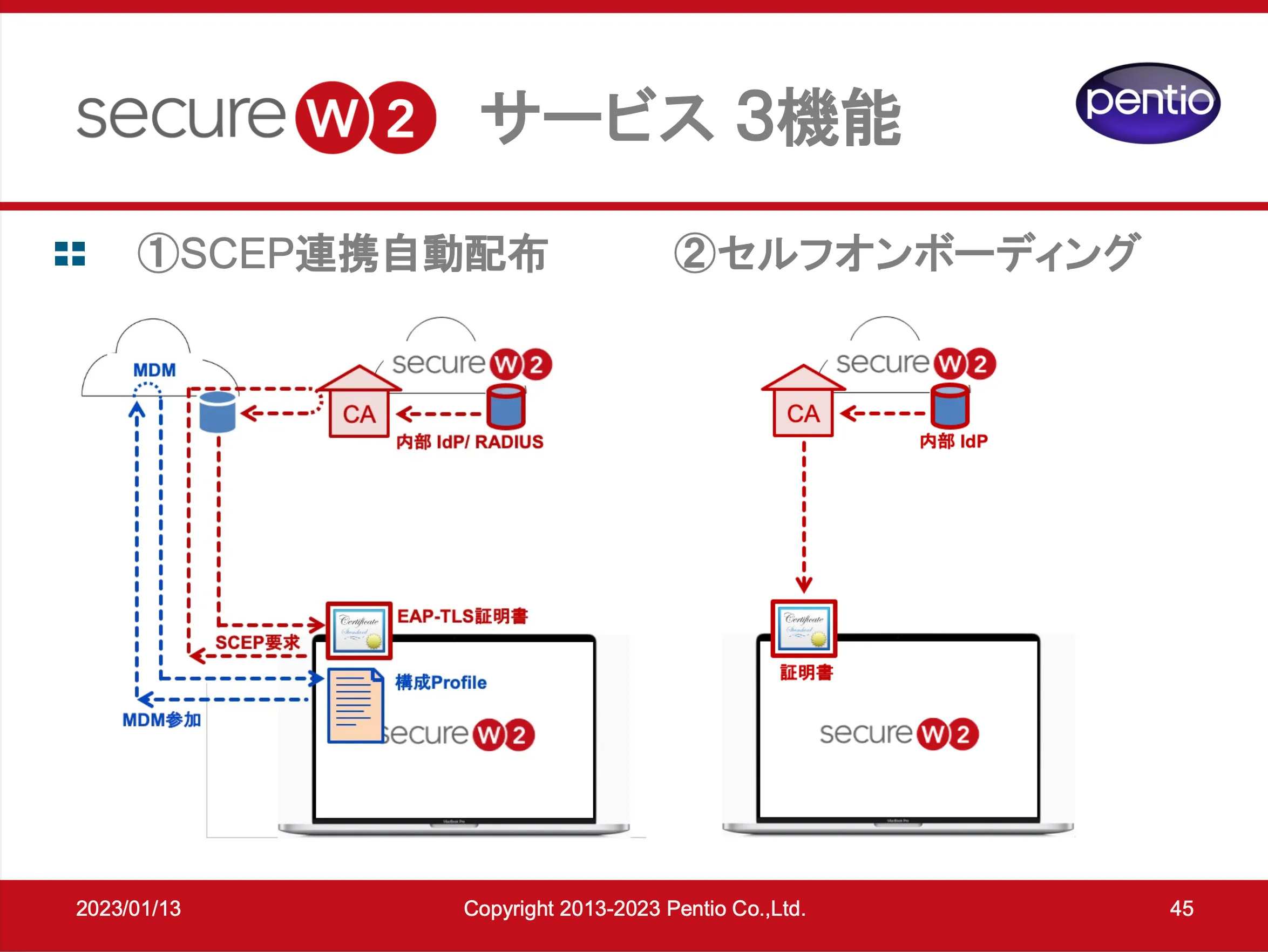 ペンティオ株式会社(本社:東京都千代田区、以下 ペンティオ)は2023年5月24日(水)に、SecureW2オンラインセミナーを開催しました。