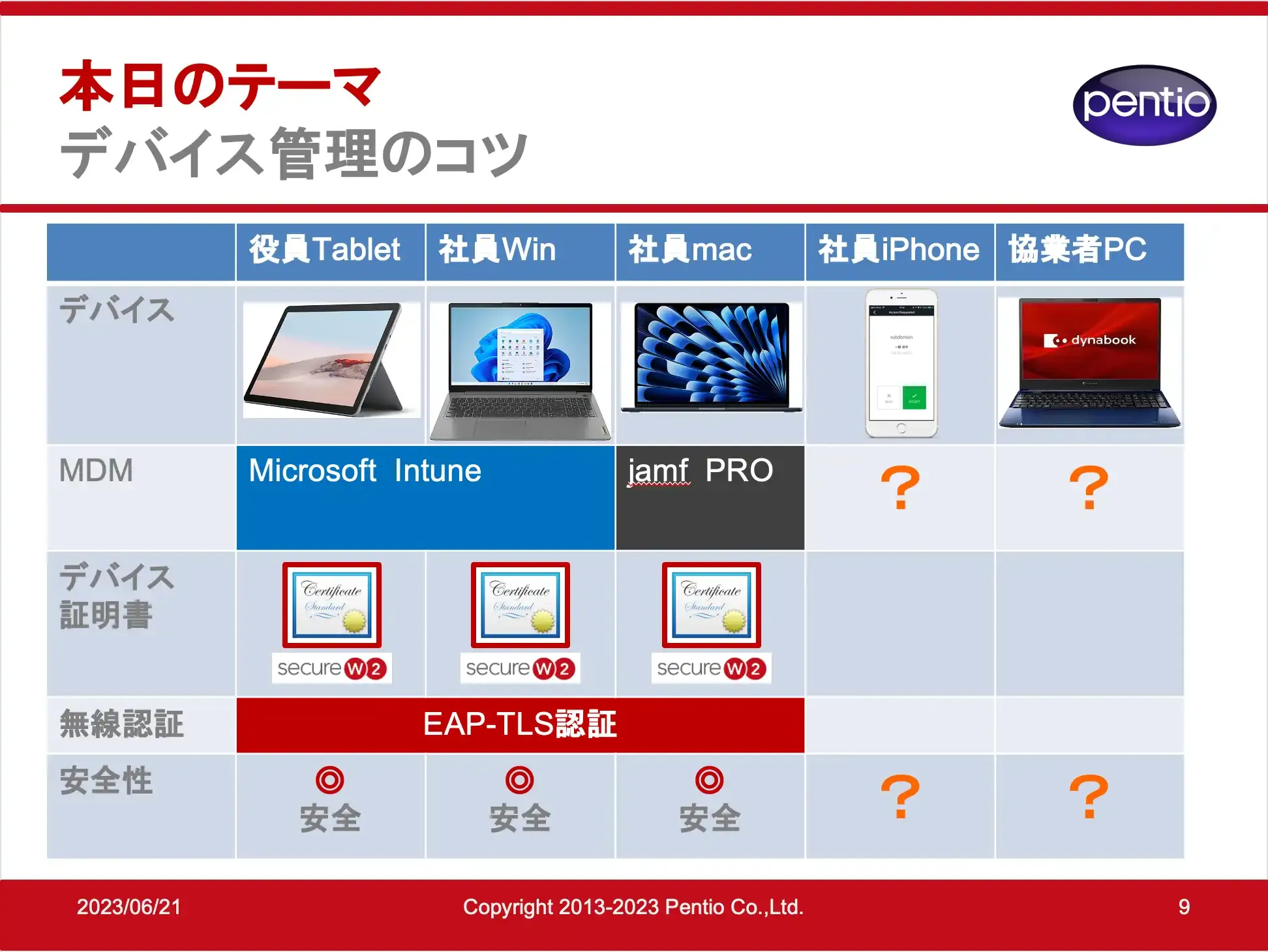 ペンティオ株式会社(本社:東京都千代田区、以下 ペンティオ)は2023年8月23日(水)に、SecureW2オンラインセミナーを開催しました。