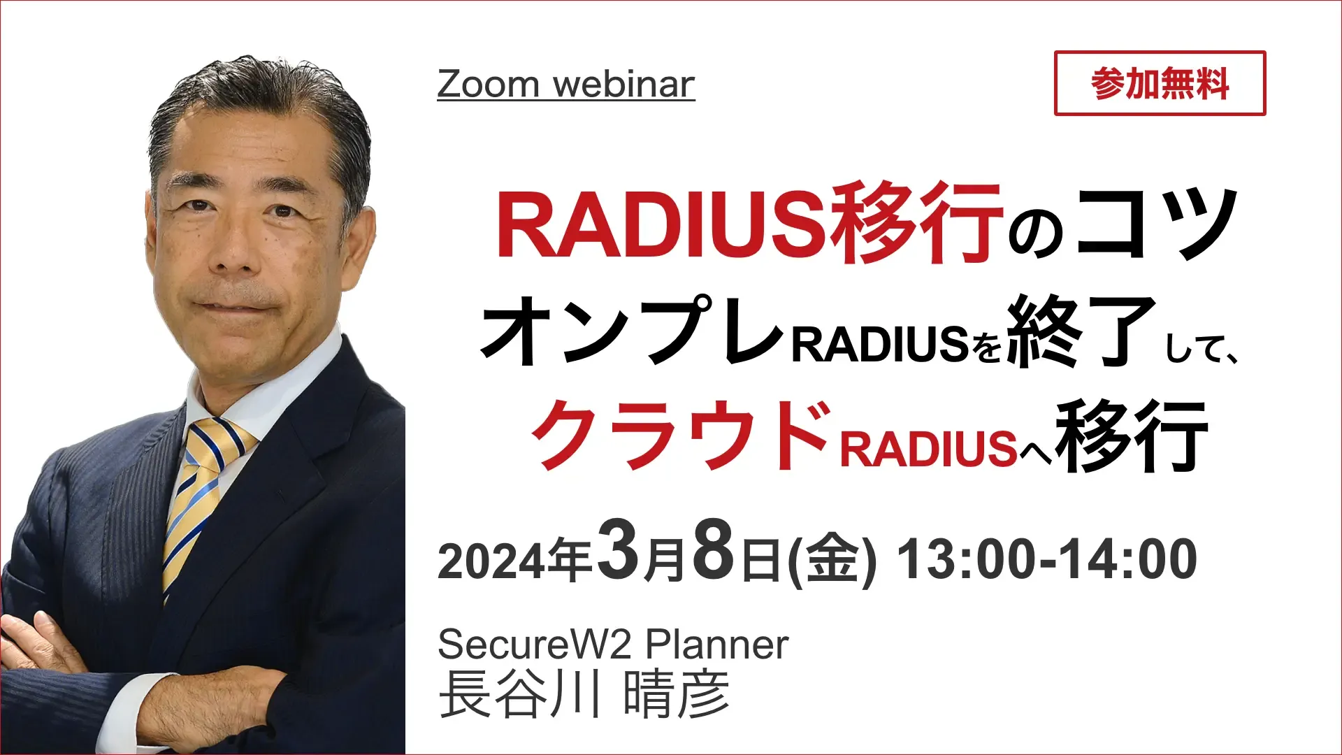 本セミナーは、旧オンプレRADIUSをクラウド型のRADIUSに切り替える方法をテーマに、スムーズにクラウドRADIUSに移行するコツをご紹介しました。 SecureW2を使えば複数の事業所に設置しているオンプレRADIUSを、一つのクラウドRADIUSに統合することができます。現在RADIUSを導入していない会社も、クラウドRADIUSを導入することで、コスパよくRADIUS認証を実現することができます。