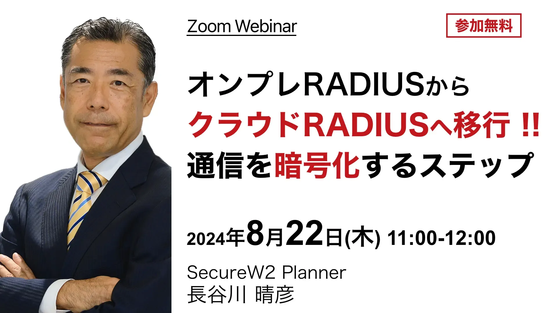 本セミナーは、旧オンプレRADIUSをクラウド型のRADIUSに切り替える方法をテーマに、スムーズにクラウドRADIUSに移行するコツをご紹介しました。 SecureW2を使えば複数の事業所に設置しているオンプレRADIUSを、一つのクラウドRADIUSに統合することができます。現在RADIUSを導入していない会社も、クラウドRADIUSを導入することで、コスパよくRADIUS認証を実現することができます。さらに、RADIUSをクラウドに移行したあと、セキュリティをより向上させるために、クラウドRADIUSサーバーの通信を暗号化する方法をご紹介しました。
