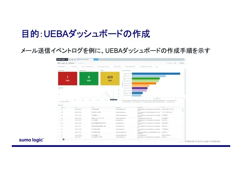 本セミナーでは、データ流出につながるようなユーザーの危険行動(危険行動を示すイベントログ)をSumo