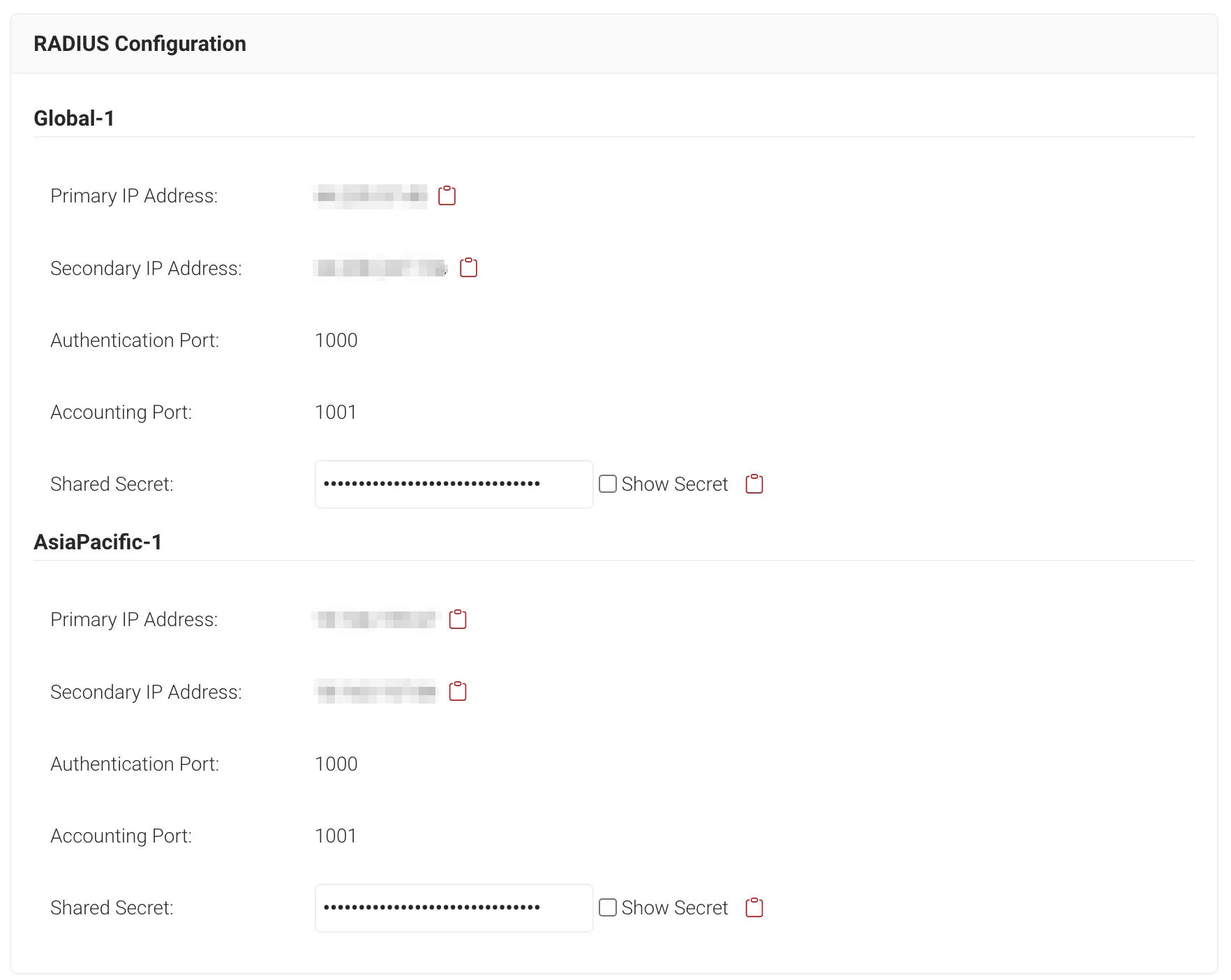 また、Global-1リージョンとAsiaPacific-1リージョンを同時にご利用いただけるため、RADIUSクライアント機器が3つ以上のRADIUSサービスを指定出来る場合はどちらもご登録いただくことで、最大4つのRADIUSエンドポイントを登録し冗長構成を強化することが可能です。