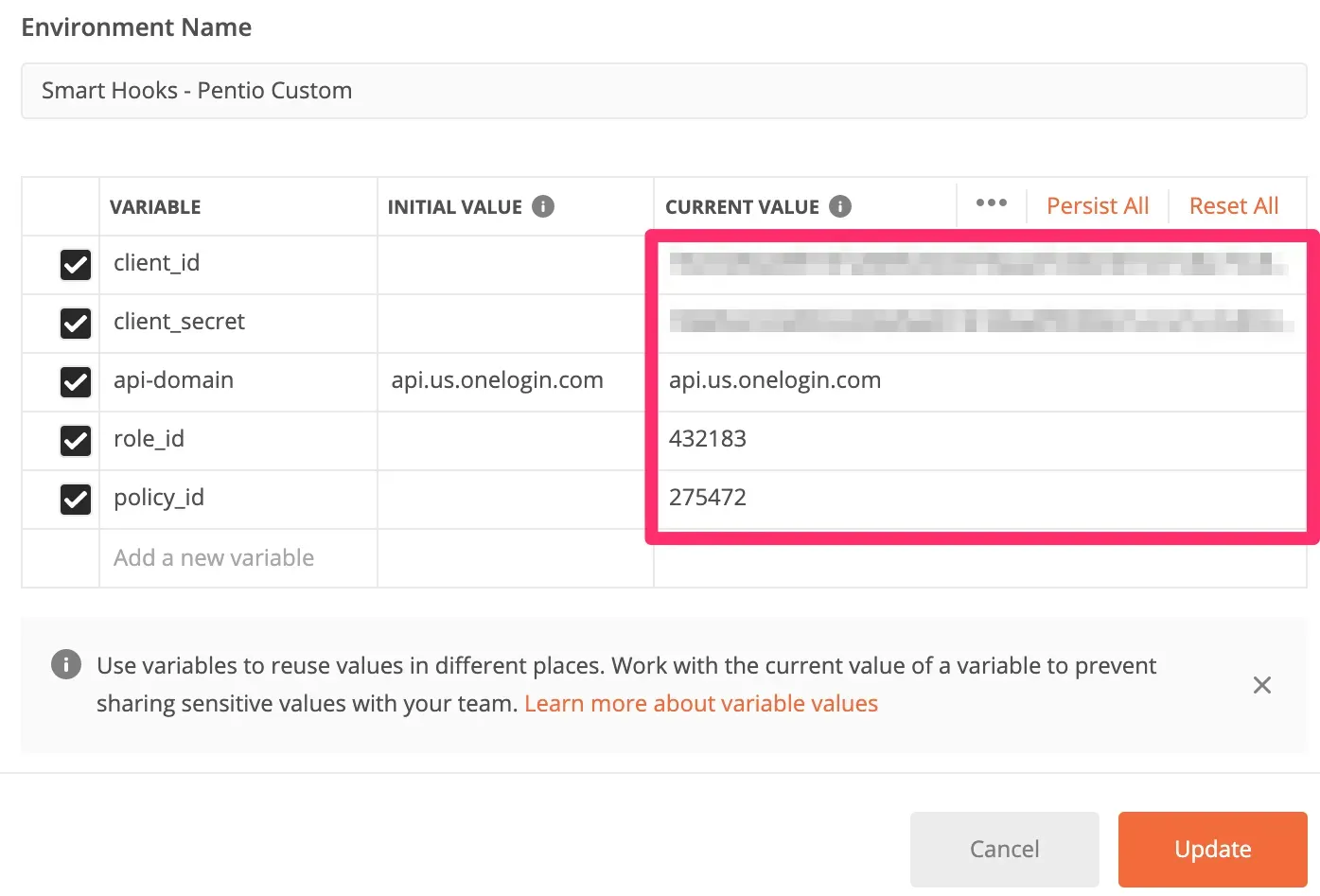 事前にダウンロードした環境変数「Smart Hooks - Pentio