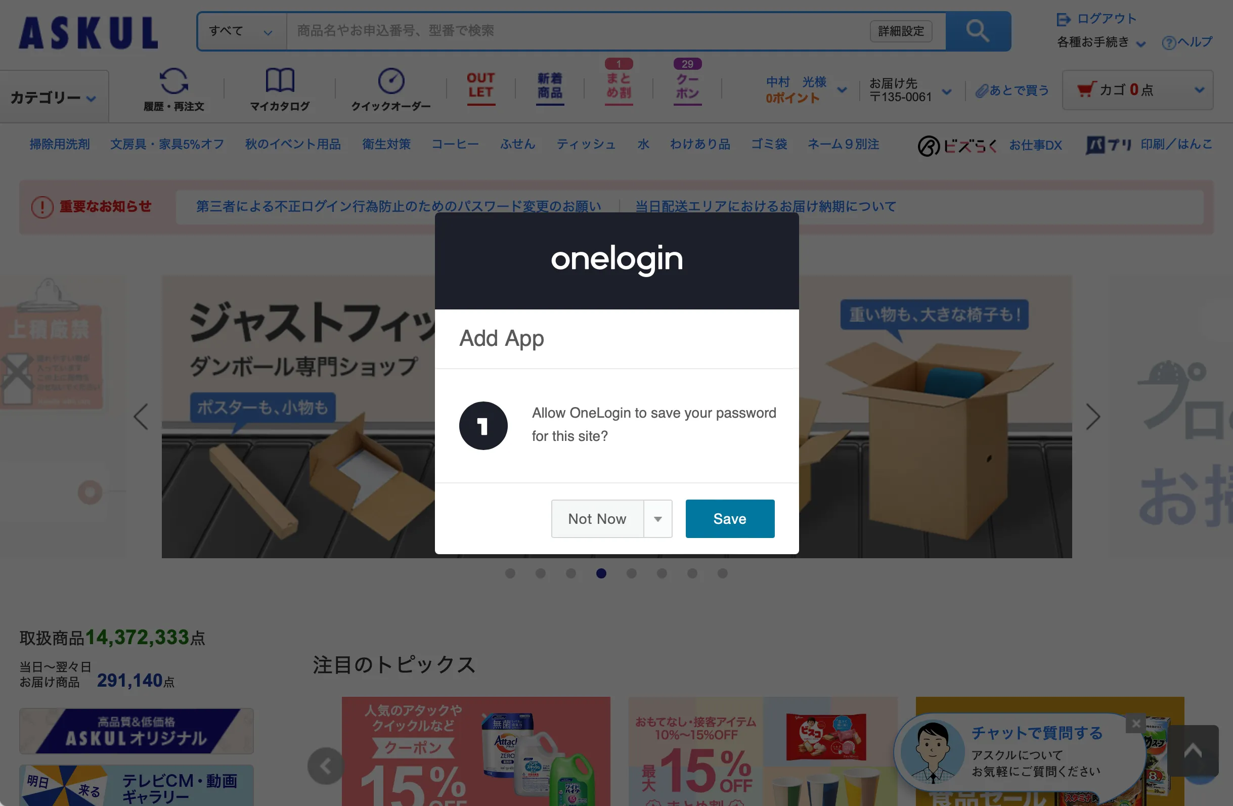 一般的な企業において、一人の社員が業務で利用することができるクラウドサービスの数は、30〜50アプリケーションにまで増えております。利用数が多いユーザーは100以上のアプリケーション利用が割り当てられています。割り当てられたアプリケーションの数 x 利用ユーザー数を掛け合わせると小規模の企業でも数万の数にまでになります。このクラウドアプリケーション利用アカウント情報を、文書やメールで伝える事は情報漏洩事故の観点から推奨される運用ではありません。OneLoginを利用すると、数万にもおよぶ膨大なアカウント情報を、文書やメールで知らせること無く、秘匿されたアカウント情報をもつアプリケーションアイコンとして受け取ります。ユーザーのポータル画面上に新規で利用できるアプリケーションアイコンが追加されます。