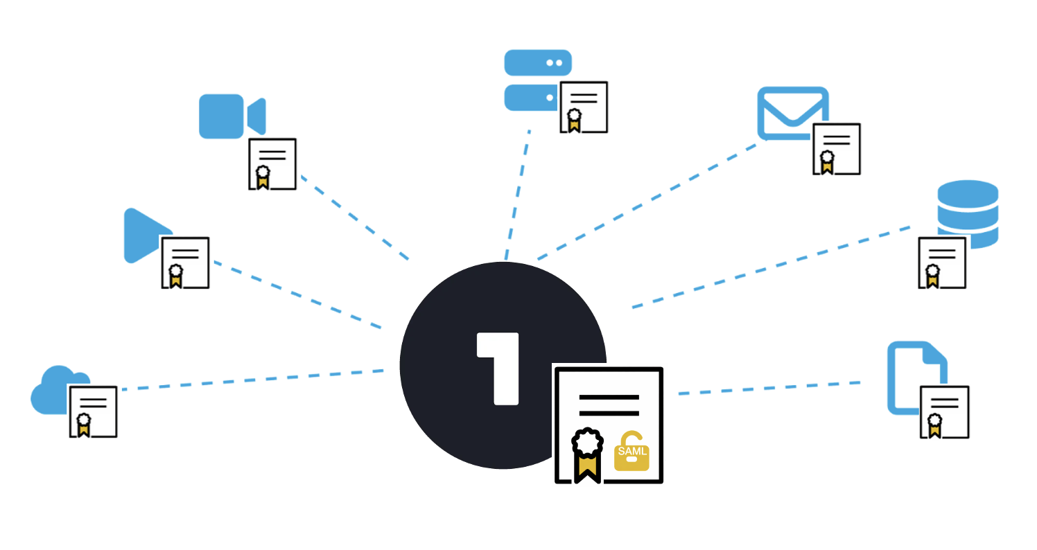OneLoginから各アプリケーションにシングルサインオンする認証方式のうち、SAML認証では、ユーザーの認証情報を安全に交換するため、OneLoginが発行するSAML署名用電子証明書が必要です。