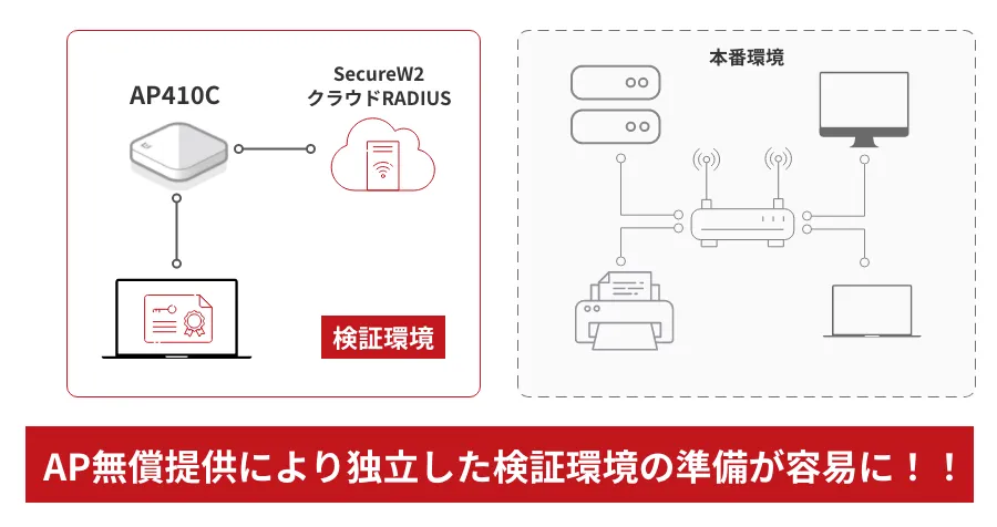 SecureW2トライアル環境の払い出しとExtreme Networks製APをお送りいたします。独立した検証環境下でSecureW2を実際にお使いいただけます。