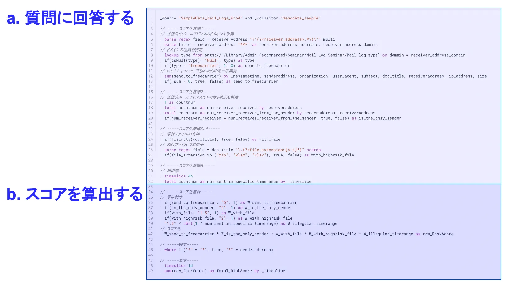 - Sumo Logic独自のSQLライクな言語で記述