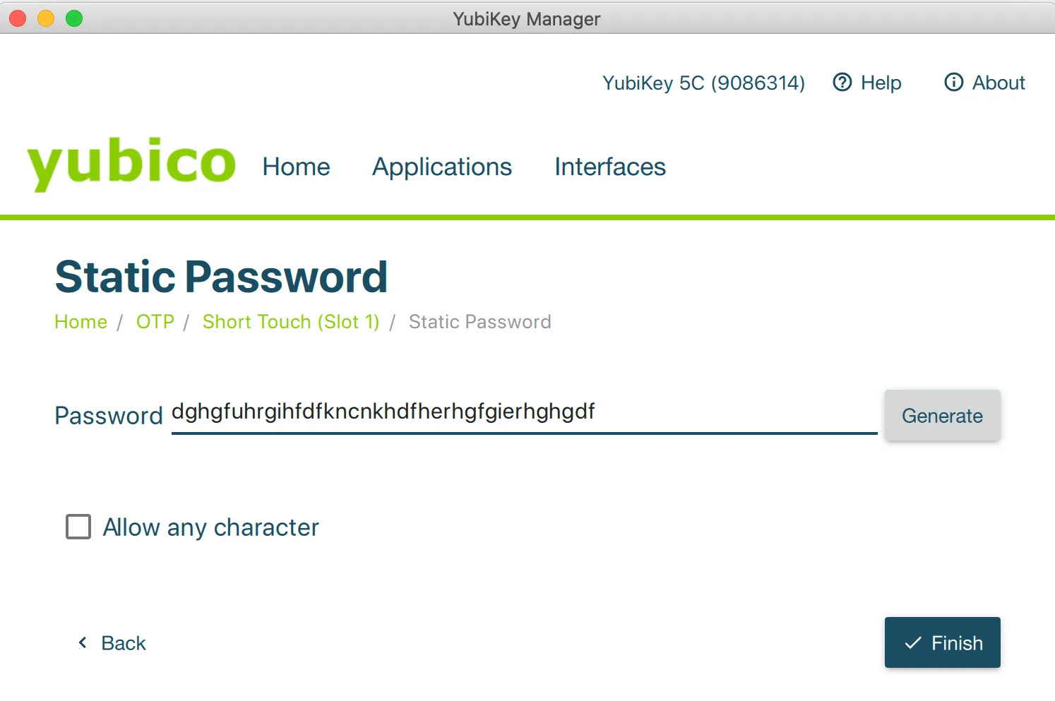 「Static password」では自動で生成したパスワードを登録しておくと、YubiKeyのボタンを押すだけで登録したパスワードが自動入力されます。